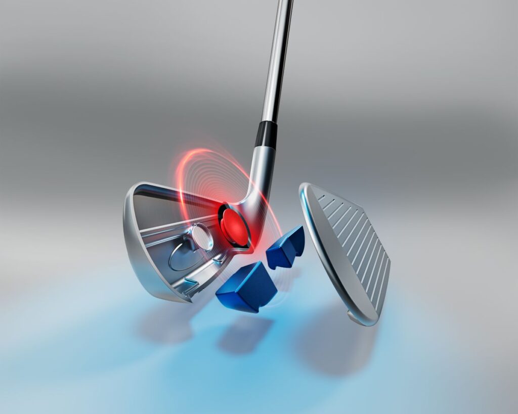 La velocidad y efecto consistentes: Un nuevo diseño de Grosor Variable de la Cara (VFT) en los hierros del 3 al 7 mantiene la velocidad y el lanzamiento en golpes descentrados, mientras que las nuevas estrías más agresivas en los hierros medios y cortos del T100 mejoran el rendimiento en condiciones rough y húmedas, añadiendo consistencia al control del efecto y ayudando a mitigar los golpes voladores.